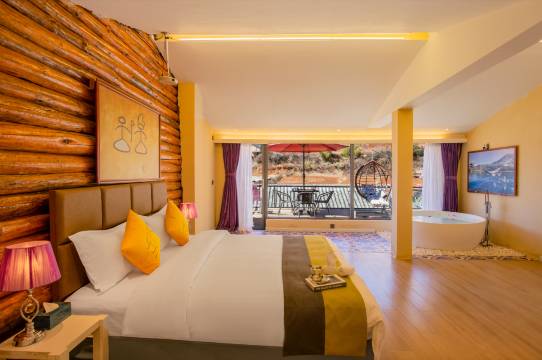 泸沽湖达祖花溪谷,隐于泸沽湖畔,依山傍水,百花竞艳,溪流潺潺,步步皆景。在这里,白天可以感受到壮观的花海,一览美丽的湖景;夜晚更可以在花海簇拥的星空屋里看繁星点点然后沉静入眠;也可以坐在纳西族的木楼观景房里喝一碗茶,看一部剧,品尝泸沽湖上好的夜色。