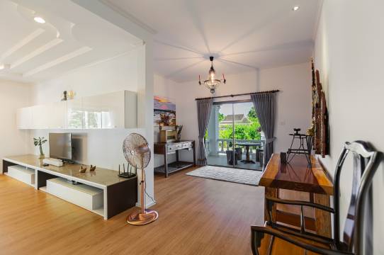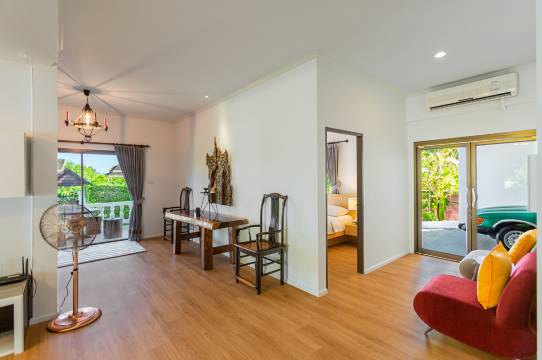 这个别墅位于查龙,地处郊区,距离普吉岛周末市集和普吉中央购物中心不到 15 分钟车程。 此别墅距离卡塔海滩 5.6 英里(9 公里),距离卡伦海滩 6.1 英里(9.9 公里)。