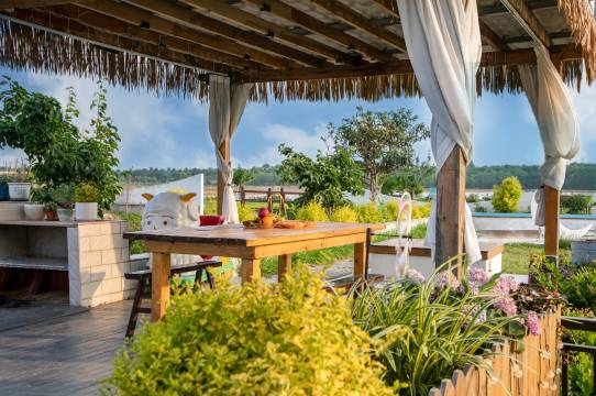 早餐很精致,都是自己做的 ,蔬菜鸡蛋都是自己种的养的,很好吃,也很新鲜!老板很热情也很耐心还帮助孩子们我起钓螃蟹。玩的设施也很多总之很满意。很适合亲子