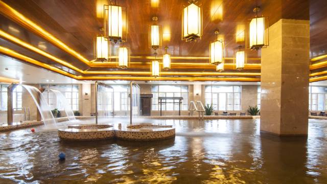 酒店拥有5000多平米的温泉中心,温泉日出水量700方以上,水中锶、铁含量达到优质热矿泉水——锶泉、铁泉命名的浓度。