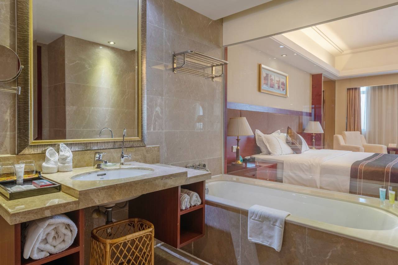 酒店前台很大气,客房很大卫生很好,泳池和健身房也可以,入住首选,前台小琴服务态度好,非常满意哦!!!