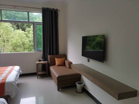 酒店装修风格低调奢华,配备干净整洁的客房32间,房内配备24小时热水,空调,wifi,电视等设施齐全。在这里有着家般的舒适与温暖,在这里还有着家里所没有的鸟语花香与高负离子含量。