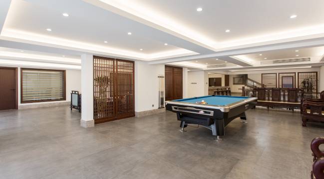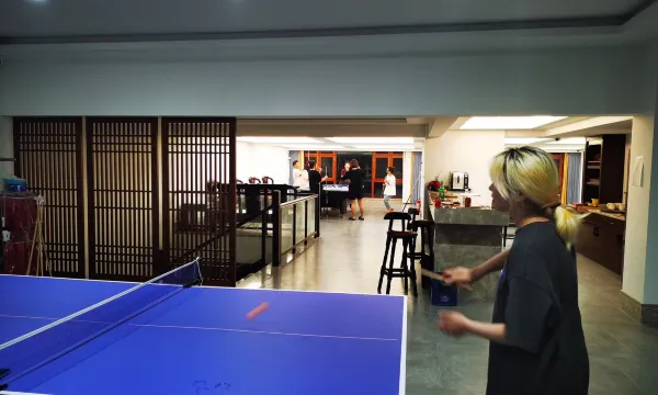 别墅上下共六层,上面四层为客房、大厅、桌游体验区、电竞室、厨房、xbox体验区、室内游戏区等;楼下两层设有综合活动区、棋牌室、私人影院(KTV)、儿童乐园、洗衣房及室内团建场地。可一站式满足您吃、住、玩、乐的需求。别墅室内总面积约一千五百平方左右,无住宿需求最多可容纳50至60人进行轰趴活动,有住宿需求可满足30人左右同时入住活动(部分人员配备舒适地铺)。