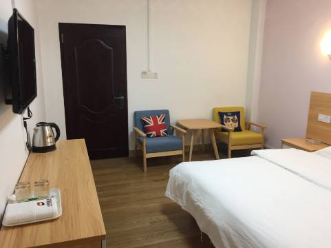预订了二间一米八大床小孩开学提前一天过去后面因为我儿子也过去了老板体贴的帮我换了一间二张床的房间还不用补钱,楼下附近都是小吃很方便半夜起来找吃了,大床那边睡觉就比较安静,双人这边因为楼下是大排挡会有点吵了,价格便宜更方便孩子接送