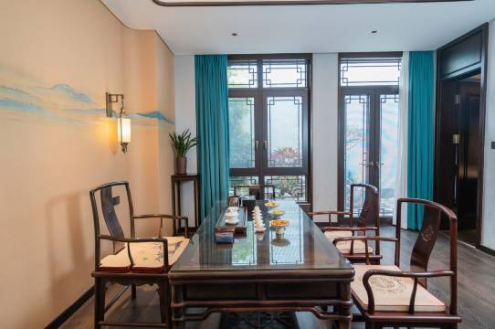 酒店的建筑风格传承了闽式粉墙黛瓦的特色,内部融合了闽派建筑和苏式园林造园技艺,亭台楼阁、水榭假山,宛如一幅美丽的画卷。房间布置得十分雅致,中式家具搭配现代化设施,既有古韵又不失舒适。空调风口都采用了中式小方格设计,细节之处尽显用心。房间里还备有茶具、茶叶,冰箱里的橄榄汁、小零食等都是免费的,每天还会送新鲜水果,让人感觉很贴心。
