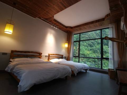 非常舒服的一次入住体验,在床上躺着就可以看到山上的云雾缭绕的美景,性价比很高!走几百米就可以到峡谷游泳和看瀑布,可惜我们到那天下着雨,没办法游泳!下次有机会再来!