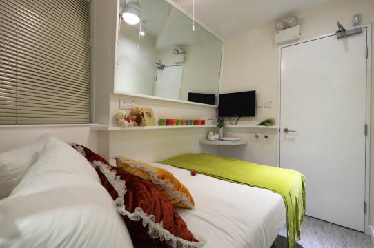 香港苹果宾馆房间时尚装修,整洁舒适,配备彩电、空调、独立洗手间、24小时热水供应、WIFI