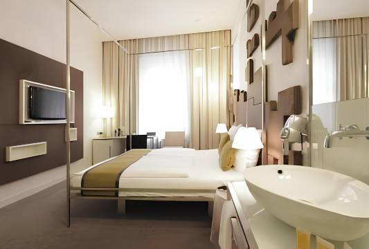 我的房间位于二楼,很大,各种设施不错,床很舒服,各类用具质量很好。房间也很安静,基本没什么噪音。早餐9欧元,很丰盛,bacon,sausage,cheese质量不错,值得。酒店离最近的地铁站步行大约10分钟,离有轨电车(tram)只有5分钟路。酒店边上商店不多,但杂货店,快餐店和面包店都有,十分方便。酒店边上还有二家pizza店,味道不错价钱也公道。