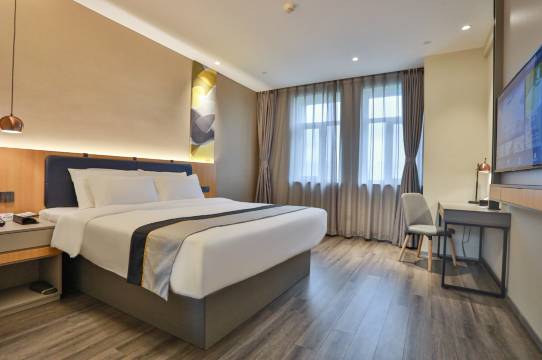 前台热情,沟通顺畅,干净卫生,房间很大而且床品舒适,价格也美丽,周围美食很多,交通也便利,总体而言非常满意,下次还回来!