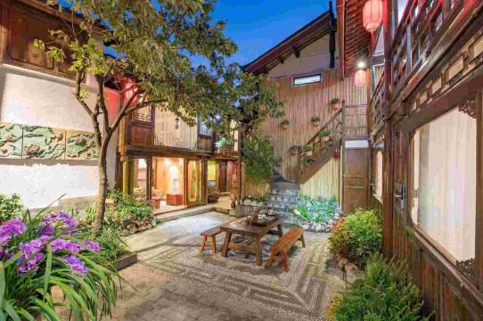 这是一个充满纳西风情的小院儿,有着高高的樱桃树。你可以在传统的二层木质结构纳西庭院内,感受碧空、艳阳。