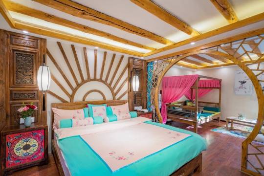 客栈全部装修材料均为绿色环保。房间内床品全部选购六十织新疆长绒棉,柔软舒适。