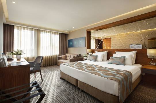 酒店位在轮渡口,往长途巴士转运中心公车站牌就在门口,对面就是美食街,海军博物馆与古堡步行可至,地点优越,搭去特洛伊的车站也不算远,早餐尚可,整体设备与服务水平接近四星,我愿意推荐
