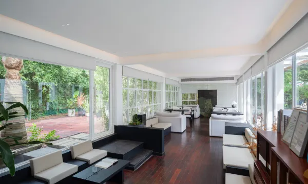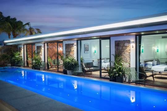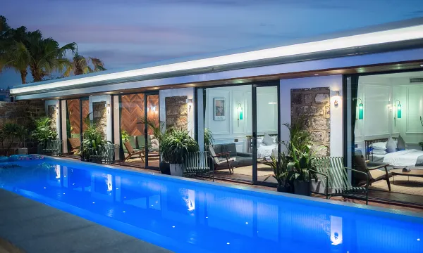 两年后,我们一砖一瓦将它们改造成三座拥有了精致的客房、北欧庭院、温暖泳池、私家花园、咖啡厅、屋顶花园和管家式服务的设计师民宿。
