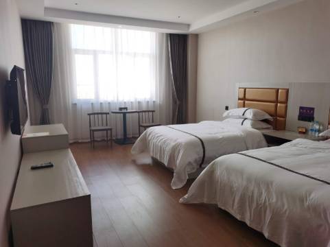 房间可以,我们一行是几个人,订了个三人间,它是个套房,前面是两个双人床,那一间呢,是一个大床,环境不错,卫生间有点简陋我们是回民,吃饭不太方便。这是个新城酒店,是24年成立的,干净没有味道