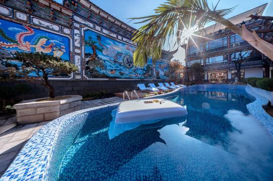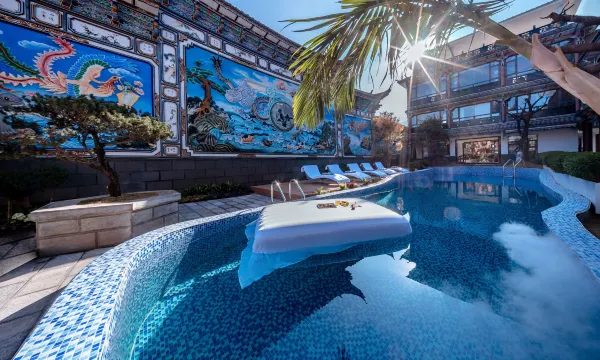 最绝的是民宿自带泳池,被绿植和特色建筑环绕仿佛在东南亚度假游完直接去古城逛吃位置太香二