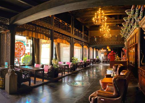 公馆旗下的云锦成饭店还创新了晋商数十家豪门望族的百种私家菜肴,独具特色;南、北两个豪华典雅的大厅设有茶吧、咖啡吧、书斋,让你在古城内尽享慢时光。