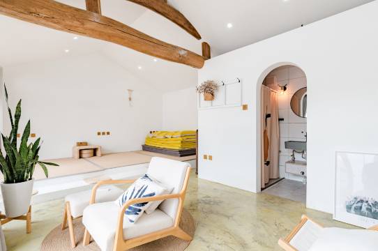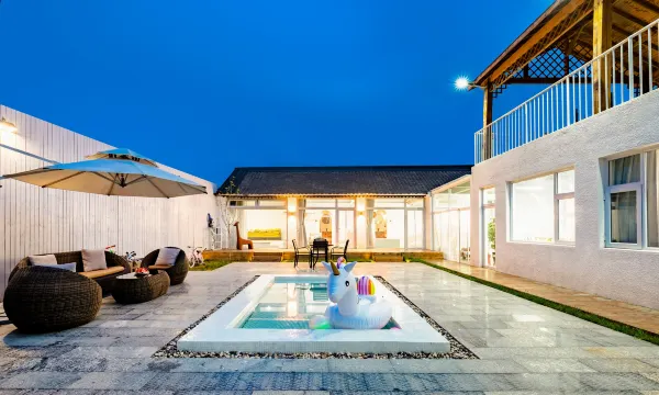 雁栖湖附近的一个小村子,小院位置很清静,房间干净,布置也很精致,卫生间私密性不那么好,比较适合情侣或者家庭住。院子非常宽敞,还有一个大泳池,夏天打算带娃来。