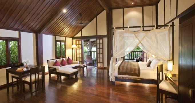 绝佳的位置,旁边就是香通寺和洋人街,自由行住这里太惬意了,琅勃拉邦不大,几个景点都是步行即到。早上的布施就在门口。早餐非常喜欢,是提供菜单进行点餐,可以选择老挝(越南米粉好好吃、粥也很好吃)或者西式(蛋培根香肠等),水果面包果汁咖啡茶都提供,味道品质一流,且摆盘好美,每天的早餐是享受的时光,绝对加分。免费的自行车是我们畅游琅勃拉邦的好帮手。还可以去姊妹酒店索菲特享受一下泳池。服务人员也是非常nice笑容灿烂。正好是泼水节酒店还送了防水袋和水枪。要说问题就是比较旧了,房间风格老家具且略简单,浴室小且水花四溅。最后两天屋顶莫名滴水。但是相对于考虑到它是百年以上的老房子和上面那么多优点,我还是非常非常推荐住这里。