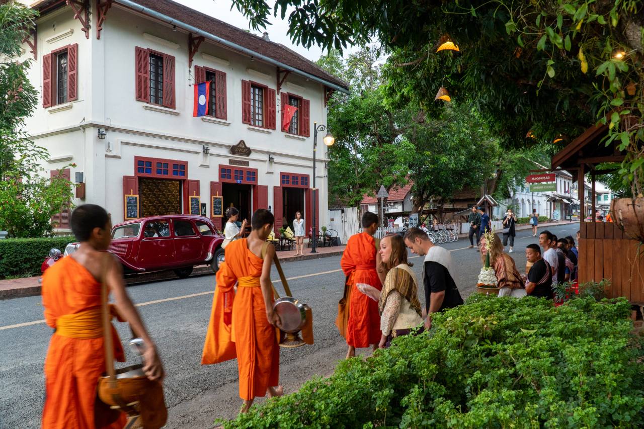 酒店位置特别好,就在琅勃拉邦的中心,酒店门口就可以参加布施(酒店服务员全程讲解和陪同,准备了布施需要的东西,以及超豪华布施位,30💲真的很值)出门就可以逛夜市,离普西山特别近,大概两三百米。
