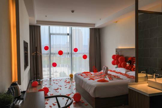 所在的环境是小区旁边,绿化都很到位,窗外风景也很好看。卫生也不错没发现什么不好的。是跟朋友一起住的,发现床头柜有安全套,就是放在盒子里需要扫码付款购买才会打开给你使用的,这个设施还是准备的挺充足的,情侣来挺方便的,嗯。这个图片跟实际房间很贴合,不用担心图与实物不符。