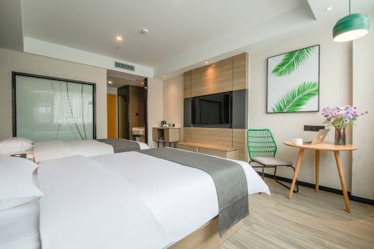 他们家房间干净卫生,设施配套齐全,门锁安全性高,还有电视清晰也不卡顿,吹风机,洗漱的都应有尽有,卫生间干湿分离,空调覆盖性广,窗帘遮光性好,还有早上的早餐也是很丰富咸淡甜都应有,WIFI覆盖了整个楼层,还有地下停车场酒店周围吃的也多,周围也很方便打车的,酒店前台小姐姐态度也很好,办理入住这些都很到位!下次还会选择这家酒店的!!!