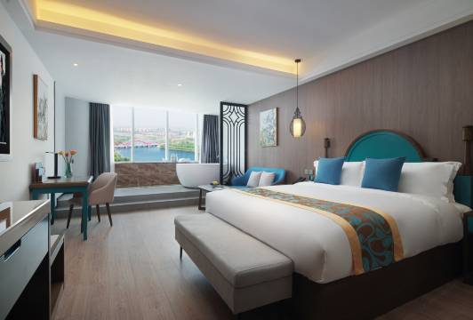 酒店采用智能无线客控,并搭配智能窗帘和灯光控制系统,感受智能时代带来的无限便捷。温控系统采用独立的中央空调,让您体验四季如春的入住感受。干湿分离浴室设计更让生活时刻畅意。装修风格采用回归自然的青砖、水泥墙、原生态木质作为主基调,加上窗外碧波浩荡的淇河和整个鹤壁市360度城市自然景观,俯仰之间一如面朝大海春暖花开,每一间都是畅然舒适的享受。房间使用55寸高清电视,采用独特互联网生态系统。卫浴使用国际一线品牌,在一线品牌之间找寻各大品牌优势产品,配合智能淋浴温控系统,恒温+5S出水系统,让您感受酣畅淋漓的沐浴享受。床垫使用进口的皇室百兰品牌床垫,工艺结合东方人体力学设计,让您快速消除疲劳,布草使用60*80的高密度稠质雅兰布草,入身丝滑。集团定制品牌浴品让您尽享舒适、乐趣,为懂生活有品质的您打造休闲、私密、精彩绽放之旅。