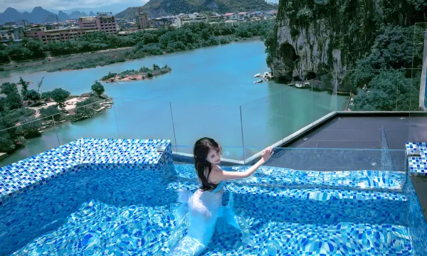 酒店坐落于桂林市中心,依偎在如诗如画的漓江畔,地理位置得天独厚,连续三年荣登美景榜。这里不仅为客人提供舒适宜人的住宿环境,更让他们能够近距离领略漓江的自然之美。酒店内娱乐设施丰富多彩,其中一楼的漓江院子咖啡吧,是一个将自然美景与咖啡文化完美融合的独特空间。在此,您可以一边品味浓郁香醇的咖啡,一边欣赏壮丽的漓江风光;漫步于漓江岸边,更能零距离感受垂钓和喂鱼带来的乐趣。此外,酒店还提供山水旅拍体验,让您在江畔露营、观景露台及无边泳池等打卡点轻松拍出大片佳作。为了孩子们尽情玩耍,我们特别设有儿童乐园,同时配备了健身房以满足您的健身需求。位于六楼的ZUI漓江餐厅,以广西特色菜及融合菜为主打,每一道菜肴都是对味蕾的一场狂欢,深受宾客喜爱。而七楼空中景观泳池则视野开阔,可俯瞰到绝妙的漓江美景,更是摄影爱好者的天堂。在这里,您可以全方位享受那份独特而迷人的漓江风情,使旅行体验更加圆满。不论是家庭出游、商务差旅还是情侣度假,都能在此找到属于自己的欢乐时光。我们期待您的莅临,共同感受诗意与远方,并领略那份动人的漓江之美!