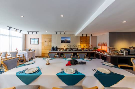非常有氛围的酒店,刚到的时候发现是在别的酒店楼上,并且只有一层,心凉半截,结果一上去,豁然开朗,后悔去晚了,楼道都是景色,还体验了画唐卡,老师非常有耐心的教我们,早知道就不去八廓街画了!早餐也很好吃!有机会再去拉萨,一定会再选择这个酒店!