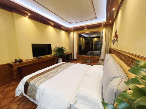 藏式风格,房间很大,环境很好,卫生干净,有自己的停车场,停车非常方便,周边吃饭很方便。晚上很安静。赞👍🏻