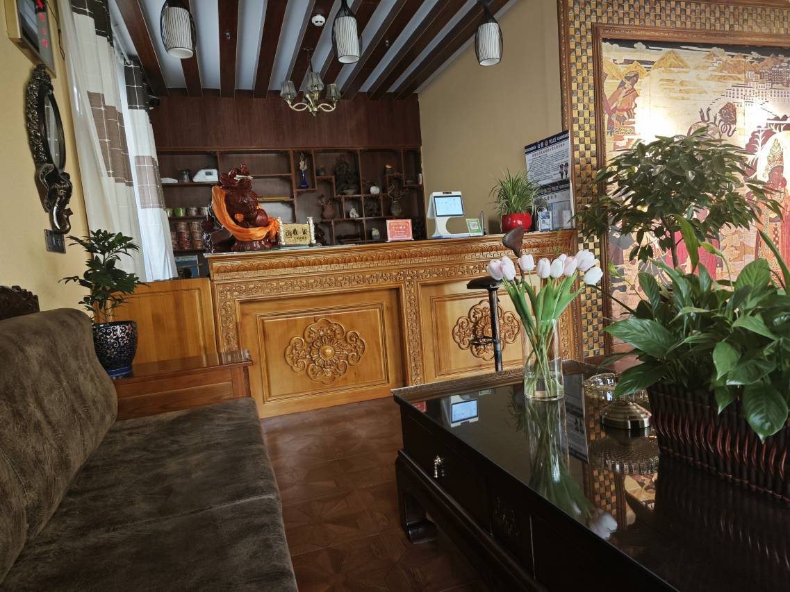 看见网上评论很棒,就预订了,晚上到了果然如网友评论一样,藏族风格的大堂,房间宽敞干净,洗手间虽然未干湿分离但是有暖风机,还有AI自助饮水机烧水,前台小姐姐非常热心的帮忙拿行李,特别叮嘱第二天早上用她们自己酿造的免费的蜂蜜冲水喝,体验感很棒