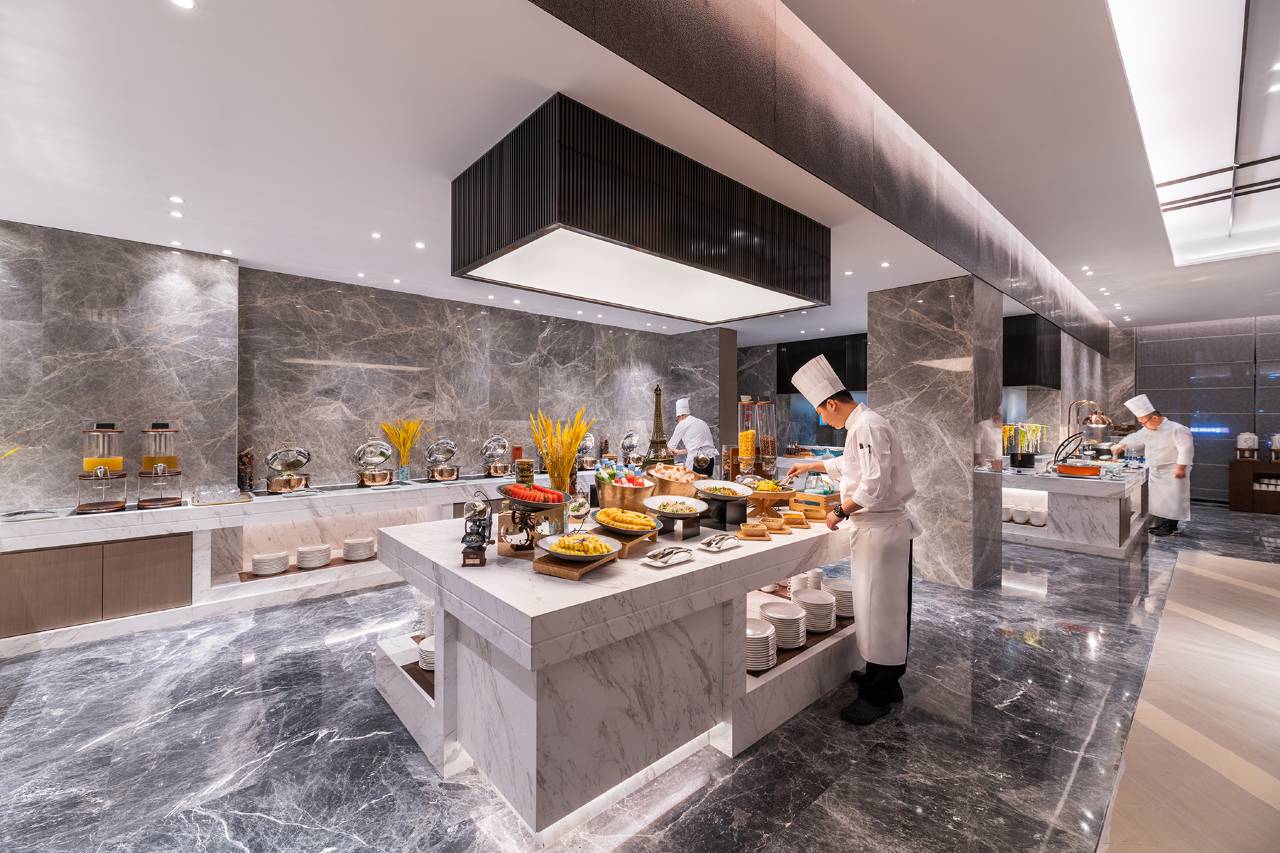 酒店食宜餐厅提供营养丰盛的自助早餐,包含本地特色、中西式美食。