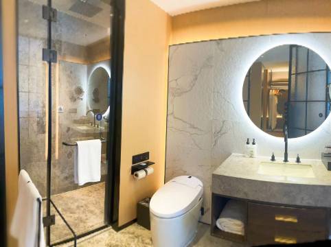 房间的话,订了一个套房,不是很大,还有的设备设施都有,也很干净卫生。🚽是自动的,非常好,很多五星还都是老式的。