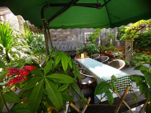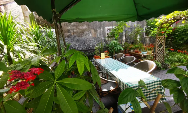 在一所古宅里,但是装修十分完善。开着空调也不会潮湿。房间内部干干净净的。门口小花园在晴天也十分舒适。