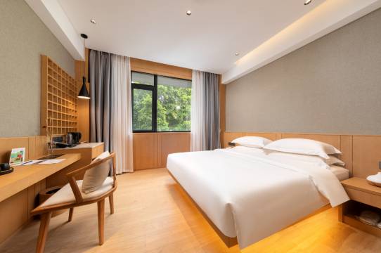 第一次过来这一家酒店这边入住,前台小哥给升级了房型,超级大床房床真的非常非常大。酒店环境还是挺不错的,属于那种藏在园区里面的小酒店,环境比较安静,附近也有很多逛的地方打卡,离地铁站也不远,很神奇,还有很多中草药、药酒。总体来说不错,值得好评。