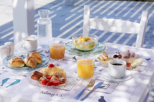 您可以去Almyra Beach Bar海滨餐厅一边享用美味的地中海菜,一边欣赏花园景色;天气好时还可在室外用餐。您也可以选择待在房间里,享受部分时段客房送餐服务。如果想喝一杯,放松一下,可以去池畔酒吧;此外还有 2 间酒吧/酒廊和 20 间海滩酒吧供您选择。每日 07:30 至 10:30 提供免费的自助早餐。