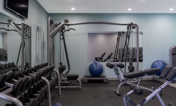 设施:游泳池、有健身房、器材挺多的