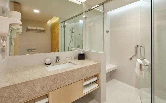 酒店非常大,做大的不足有两点∶吃早餐走太远,要到resort那边去吃,房间办公很不方便,没有办公桌,现有的桌子要么太高要么太低。