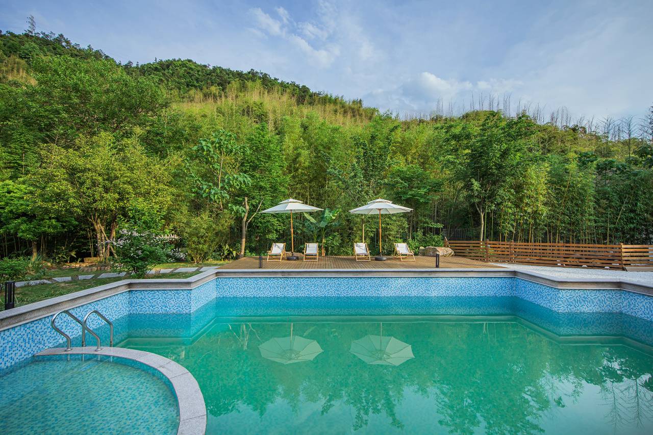 之前出来玩都比较倾向于住酒店,这是第一次住民宿很惊喜,民宿还有个超大的泳池,小朋友玩得很开心,管家小姐姐超级热情,有求必应,去景区玩找管家小姐姐帮忙买票超划算,饭后可以村上转转,很惬意;必须给五星好评[偷笑],想说一句安吉真的太火爆了吧,周五的漂流人都这么多[捂脸]