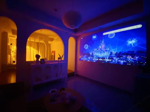 民宿内有设计风格不同的房间,民宿配备极米全高清,哈曼卡顿原装音响投影仪/小爱同学音箱;精选乳胶大床垫,轻薄贴肤星级四季被,高低软硬枕头可供选择,亲测舒适好眠;洗漱用品齐全,一次性毛巾、品牌洗发水沐浴露,一次性泡澡袋;星级标准水洗纯棉四件套,我们承诺一客一换洗漱用品;独立淋浴卫生间,干湿分离, 24小时热水;提供零食点心;独立冷暖中央空调;百寸高清投影仪无线投屏观看,住需要登记入住人身份信息,大门采用智能门锁,登记好信息取智能门卡刷卡进入,请保持房间内物品完好无损,谢谢!