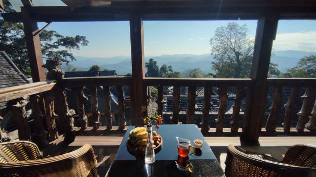 在翁基寨,周围环境很好看,阳台就能看到云海