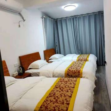 离高铁站很近,而且掌柜接站非常给力,高铁三点到,下着雪,路面全是雪,掌柜接站是风雨无阻,行李帮着提上车,直达旅店。离天门山、武陵源打车都不贵,很方便。店内也是非常卫生干净,订的3床房,睡得很舒服。也有独立热水器,洗澡很舒服,吹风机也有。价格可能随着旅游旺季淡季有变化,但是3床房117的价格可以说非常划算,三人A下来很便宜