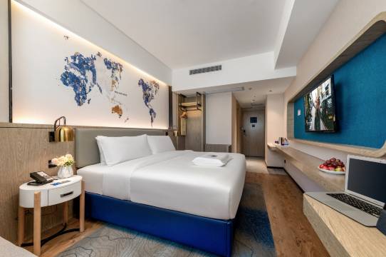 度假之旅的完美落脚点!酒店装修风格很有格调,将自然元素与现代设计融合,大堂绿植点缀恰到好处,营造出放松惬意的氛围。房间景观超赞,落地窗能欣赏到城市夜景,灯光设计温馨,多种情景模式可切换。卫生间配备品牌卫浴,热带雨林花洒水量充沛,洗浴备品香气独特。酒店配套的健身房设施齐全,运动后还有独立淋浴间。服务人员全程面带微笑,响应需求迅速,还推荐了当地特色景点和美食。在这里住了三天,每天都很舒心,强烈推荐给度假的朋友