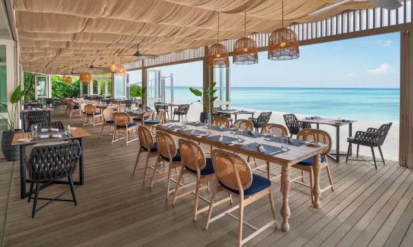马尔代夫艾美水疗度假酒店坐落在拉黑比亚尼环礁 Thilamaafushi 岛上,宛若一幅由环礁、珊瑚礁和海洋生物组成的 360 度全景画卷。这座世外桃源般的海岛面积约 9 公顷,四周有着清澈碧蓝的礁湖和海洋生物汇集的珊瑚礁,是鳐鱼和海龟等一系列本土动植物的生态栖息地。我们马尔代夫海岛度假酒店的各处设计都借鉴了世纪中叶的设计美学元素和浓郁欧式风情。沉浸在酒店的六家餐厅和酒吧、艾美探索水疗中心以及艾美家庭娱乐中心和 Padel 球场的美景、声音和风味之中。我们的度假酒店从马尔代夫地方特色中汲取灵感,融入对文化、美食和设计的热情追求,邀请富有创意的好奇旅客来此休闲胜境,探遇“品鉴美好生活”的欧洲精神。
