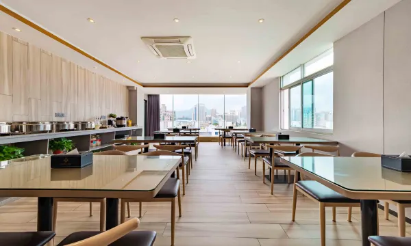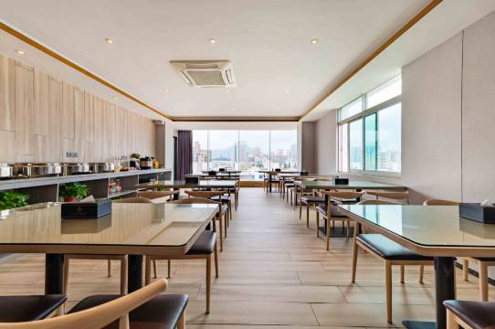 前台服务好,很热情,房间干净,房间的窗户是可以打开的,房间的网络很流畅,刷视频一点都不卡,电视可以投屏,追剧很方便,我没有预订含早,前台有免费送一份早餐卷,早餐很丰盛,推荐