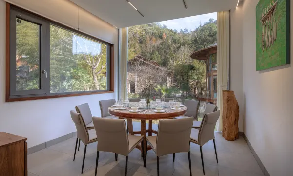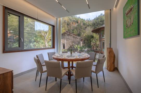 房间推窗即景,可枕着窗外的青山绿水入眠。可以在溪畔的露营地享受避世时光;也可以在美术馆或图书馆里消遣放松。
