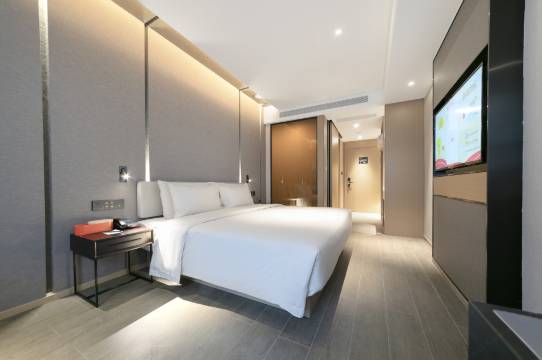 订的时候不小心订成了双床,前台很灵活的帮忙换成了大床,床品非常舒服,房间也挺大的,特别是枕头很舒服,服务态度超级好,很专业,办入住还会奉茶水喝,来到前台办理入住就有倒茶水,很暖心的服务,机器人送东西也很快,有需求都及时响应,在大厅休息也都会奉茶,退房时会主动给我们拿矿泉水,告知天气较热路上可以饮用,非常的贴心,大厅还有一墙面的书,比较满意的一次住宿,性价比比较高,值得推荐!