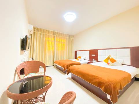 挺不错的一家民宿。有热水Wi-Fi空调,然后屋子里面的设施很齐全,最主要是门口有很多停车位,适合自驾旅游过来的,然后酒店正对面20米就有一个大金湖风景区,风景挺不错的,环境很好。