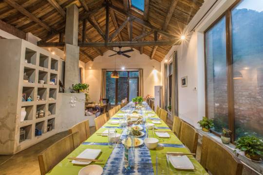 东篱乡宿山里逸居坐落在北京密云北庄黄岩口村。她的创建者娜尔苏,耗费整整四年时间在青葱幽谧的黄岩口山谷间逐步返修了几处农舍,在极尽返璞归真之能事的同事充分融入了其内心最完美的居住理念,并将其多元的生活阅历融入室内设计中,最终呈现出掩映于宁静山谷间的坡上、老钱家、半坡、山脚下、石头房这五处风格迥异、唯美温婉的独立院落。