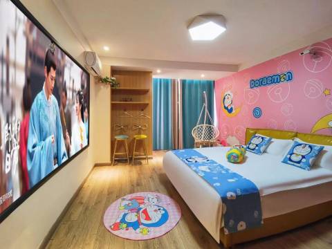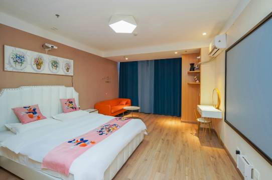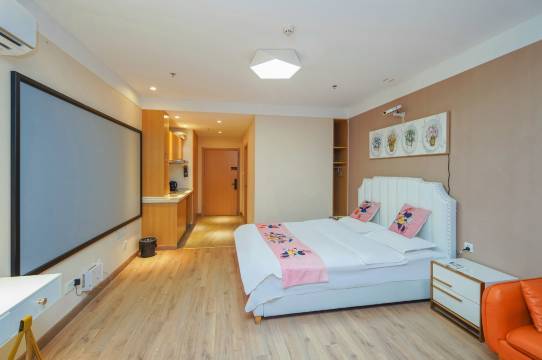 房间很好,无人自助酒店,没有前台,省去了登记环节,价格实惠,性价比高,房间挺大,投影仪也不是杂牌,很清晰