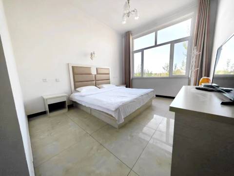 卫生和环境都相当不错,窗户超级大,晚霞景色很美,后院就是马场,没见过马的小盆友超级开心😂😂😂晚上好多放烟花的,地域开阔一眼能望到天边,在宾馆就能看到远处各种烟花绽放,附近的物价还可以,可以购买烟花,零食特产,店里的菜是真的好吃啊,那边的羊肉有一种特别的奶香味道,比起烤羊腿我更喜欢老板家的手把羊肉,清炖出来的羊肉软烂鲜香,食物原本的味道,好吃到照片都没来得及留下!!!强烈推荐!也可以自己出去觅食,第一次尝了一下咸奶茶,家里除了我没人想喝第二口哈哈哈,老板家马路对面一排超市,买东西方便